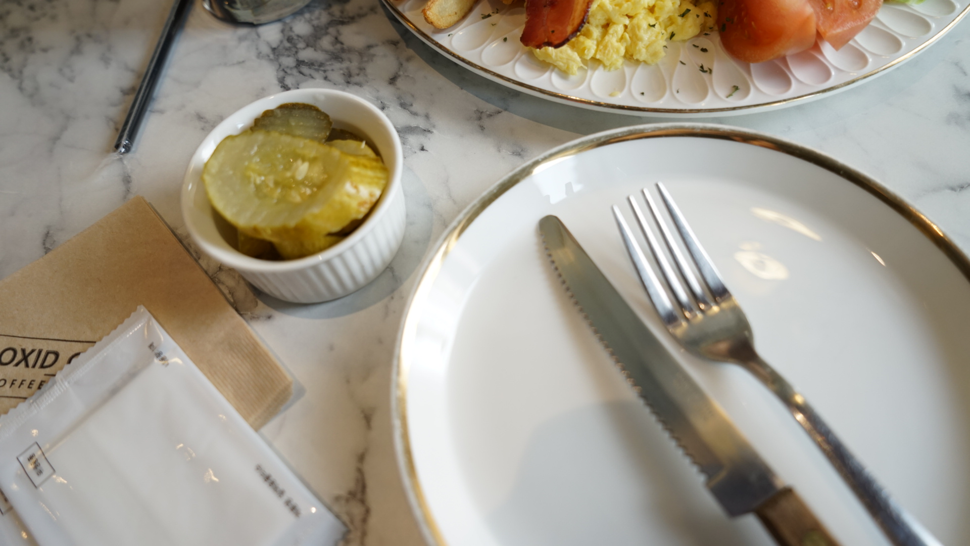 저희는 시그니처 브런치(팬케잌/프렌치토스트/스크램블 등)와 직원 분의 추천으로 불고기 피자를 주문했습니다 브런치를 주문하면 아메리카 또는 티가 제공되며 2,500원 추가시 모든 음료로 변경이 가능하다고 합니다(프렌치 토스트 제외) 시그니처 브런치에는 브런치와 피자, 음료를 제외하고도 록시드 갸토는 스콘과 케이크 등 디저트 카페로도 유명하다고 합니다 다음에 가게되면 스콘을 먹어보고 싶네요