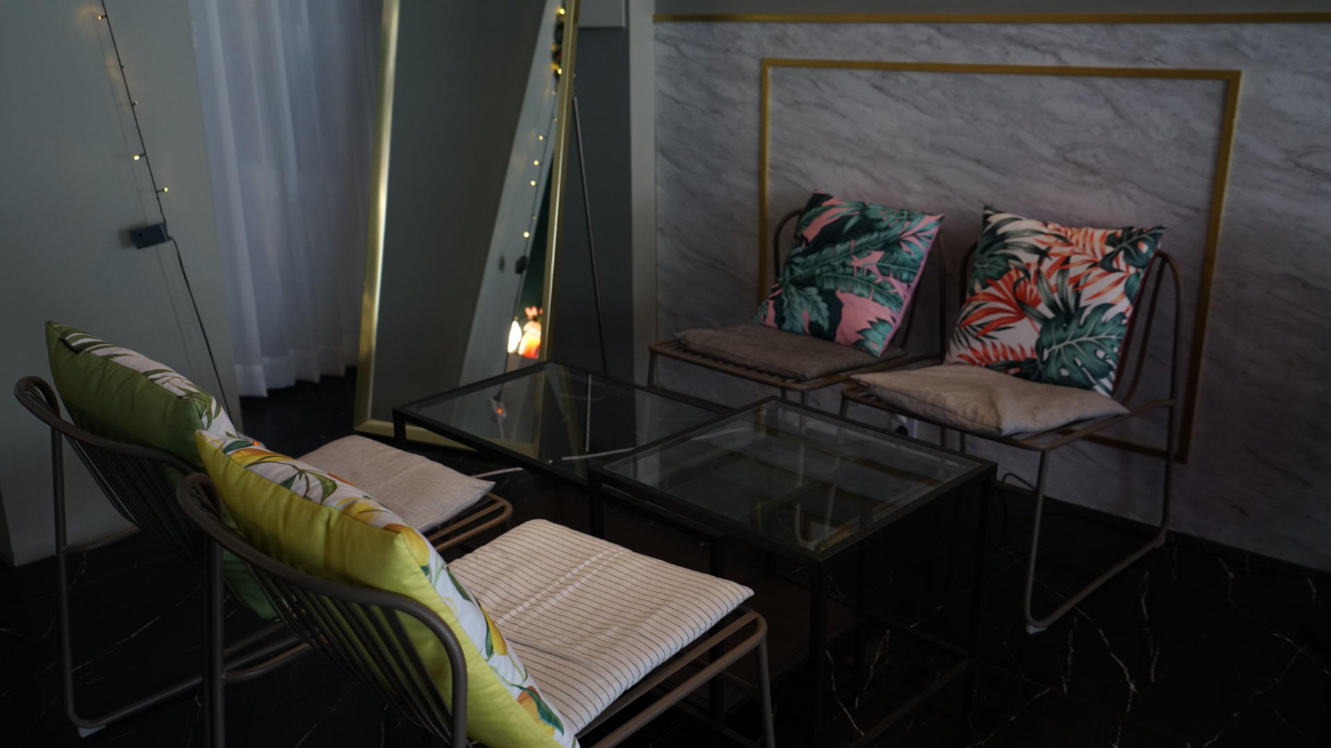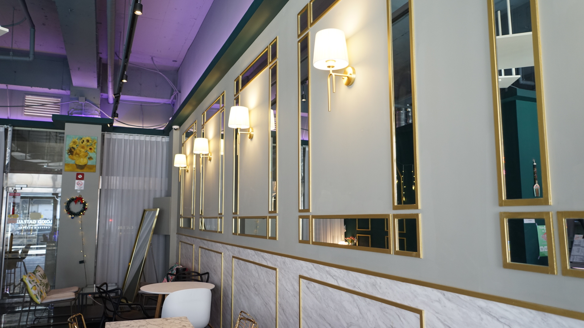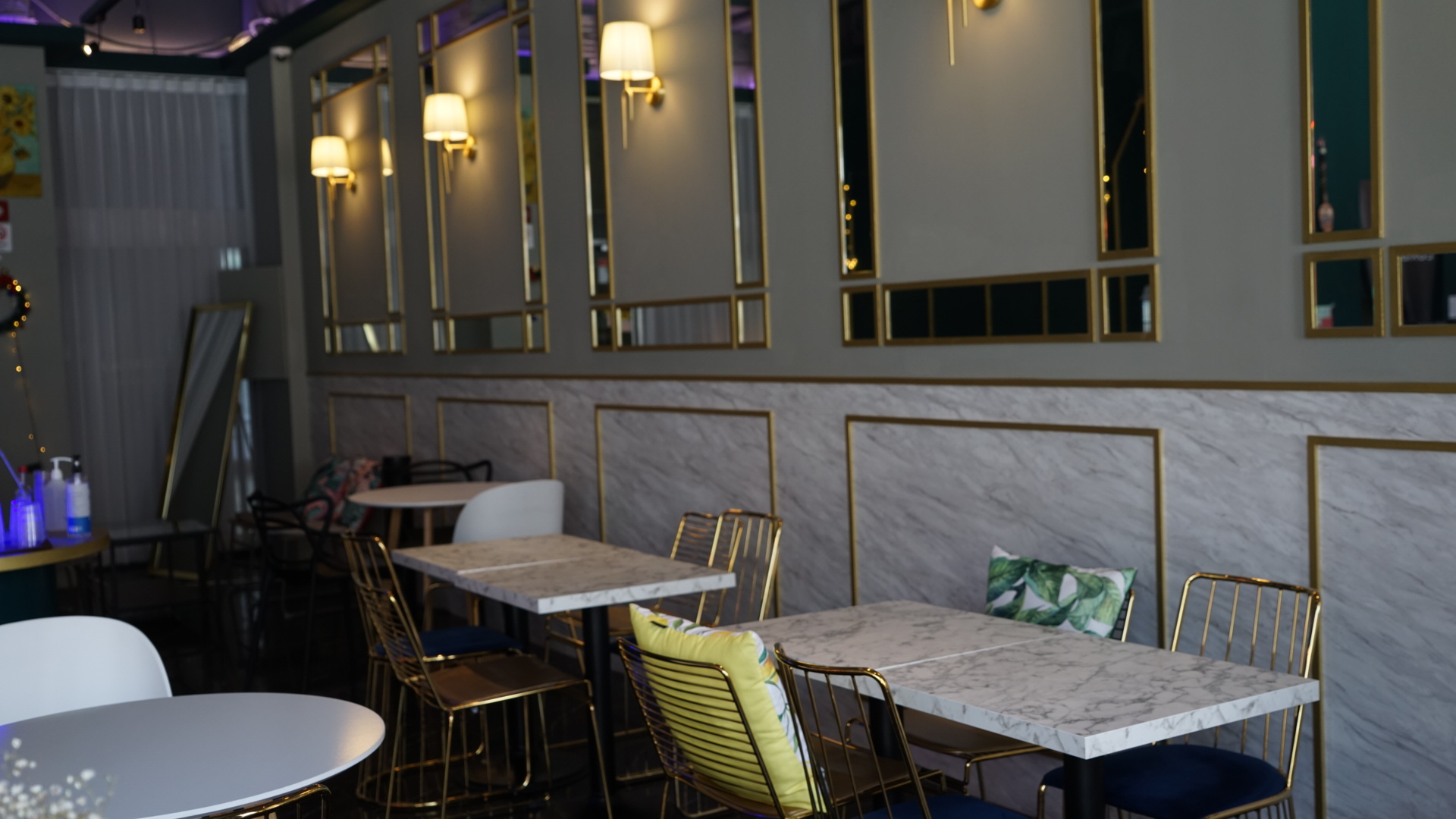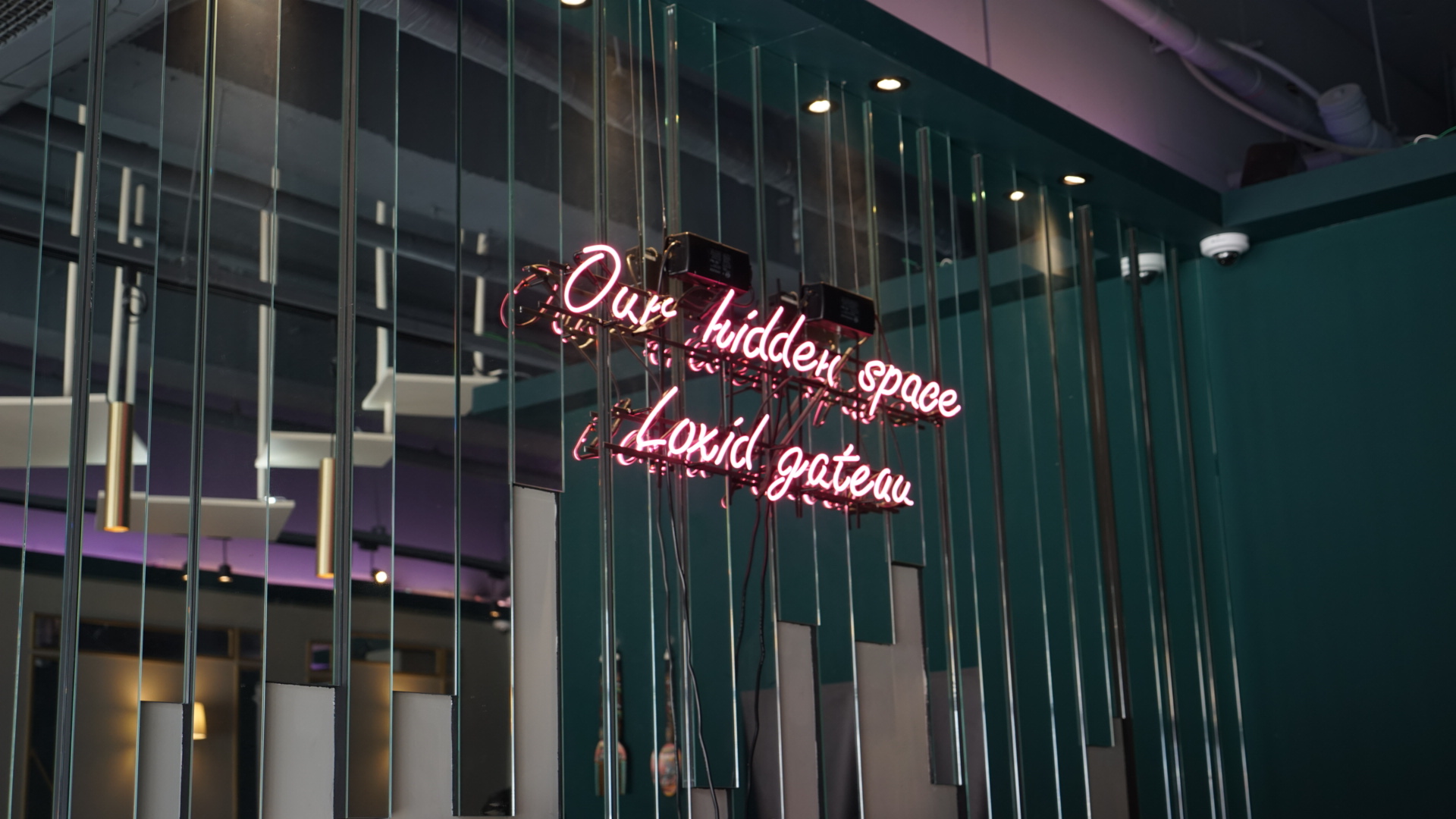 카페 내외부는 전체적으로 딥그린에 골드 장식으로 포인트가 들어가있어 고급스러운 데다 핑크색 네온조명이 펑키한 느낌이 들게 합니다 검색해보지 않고 친구따라 갔는데 알고보니 낮에는 브런치 카페로 밤에는 바로 운영이 된다고 하더라구요