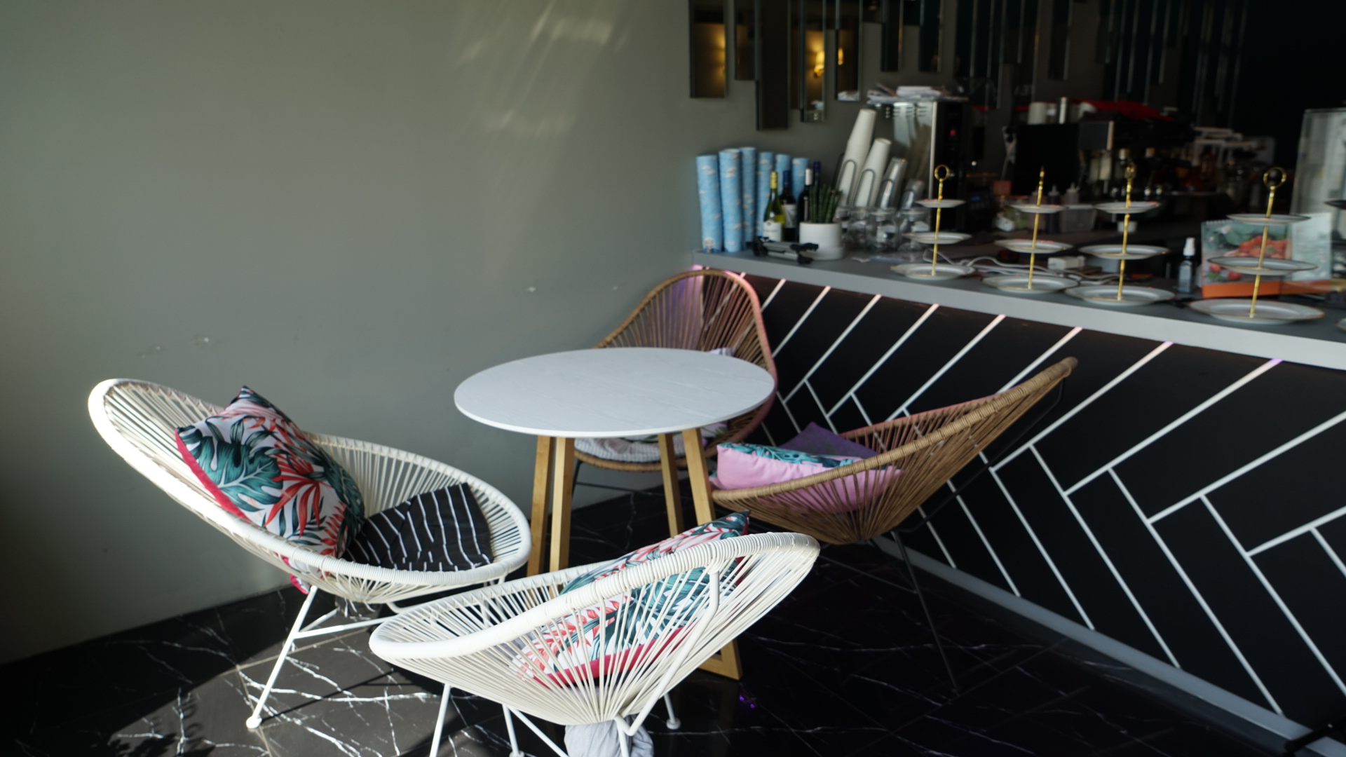 처음 카페에 들어가기 전에는 생각보다 공간이 작다라는 생각이 들었는데 4인 테이블이 6-7개 정도 있었고 중앙에는 물과 각종 소스를 셀프로 이용할 수 있는 셀프테이블과 인테리어용 선반까지 하면 공간을 알차게 활용하고 있는 곳이었습니다