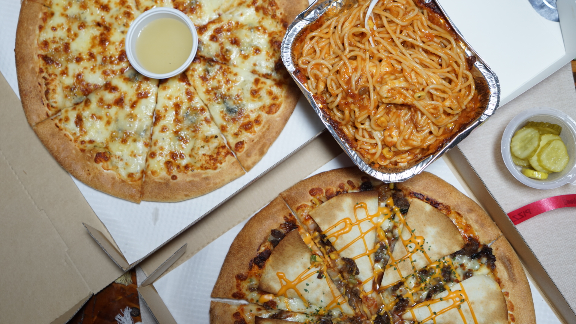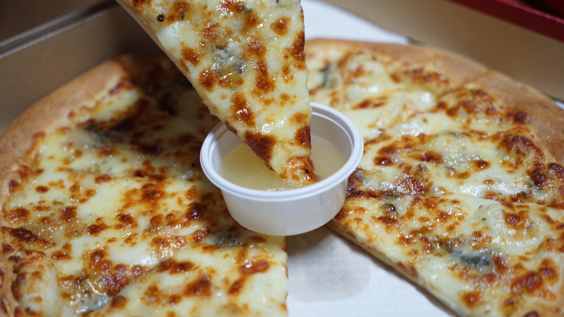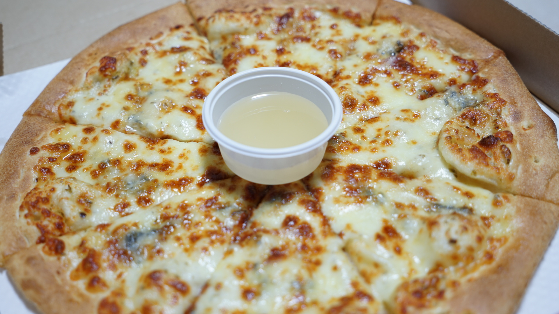일반 파스타, 피자를 판매하는 곳에서는 고르곤 졸라 빵 쪽에 따로 치즈를 넣지 않았던 것 같아서 치즈크러스트로 변경하지 않고 일반 피자로 주문했습니다 저는 먹기에 꿀이 살짝 쓰다라는 느낌을 받았는데 저 말고는 다 괜찮다 라고 하더라고요