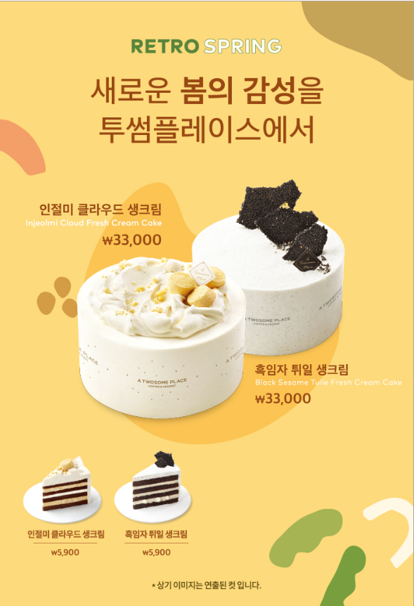 그리고 이번에 추가된 RETRO 스타일을 케이크 종류는 인절미 클라우드 생크림, 흑임자 튀임 생크림 케이크입니다