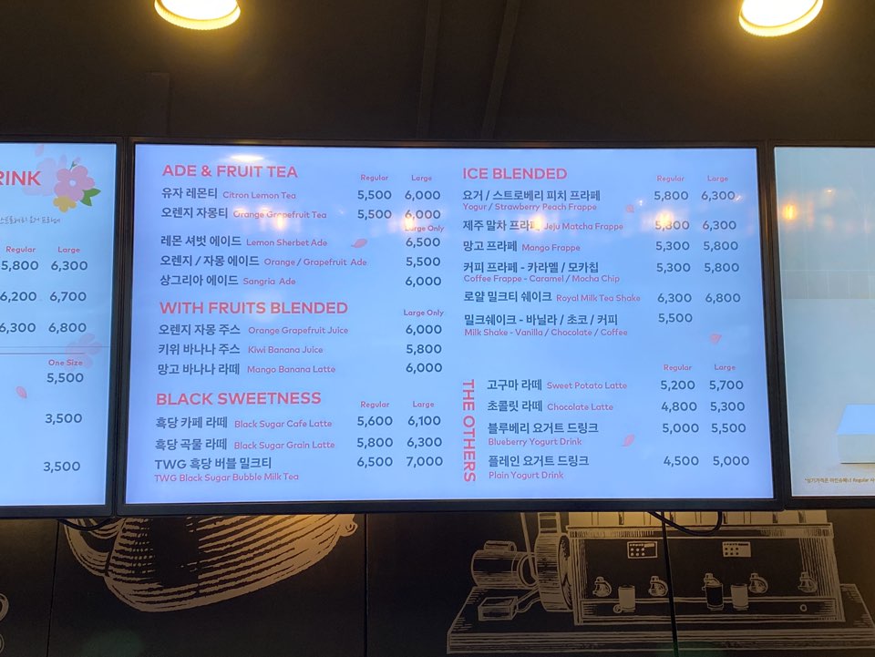 저는 같이 간 친구와 함께 쑥라떼(R), 콜드브루(L), 떠먹는 헤이즐넛 생크림 크레이프를 주문 했습니다