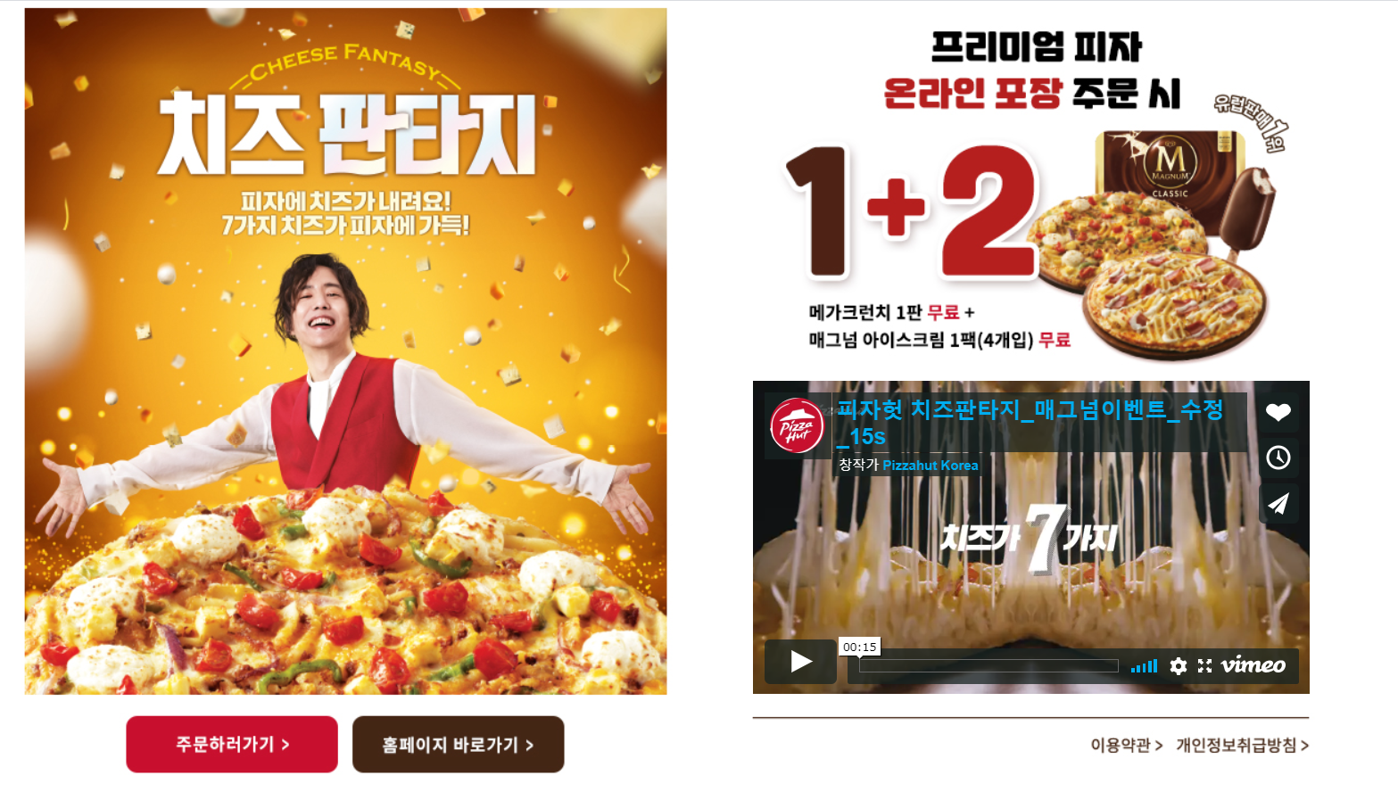 양준일 님이 피자헛 모델로 활동중이시네요 피자헛 홈페이지를 들어가서보니 여러 프로모션이 진행되고 있다는 점, 도미노 피자처럼 방문 주문시 더 할인해서 피자를 구매할 수도 있다는 점, 피자를 주문하려고 하시는 분들 참고하면 좋을 것 같습니다