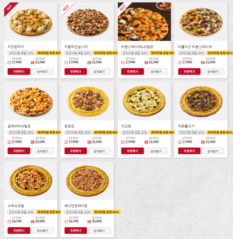 피자헛에 메뉴에 어떤 게 있는지 궁금해서 찾아봤는데 이번 신상으로 치즈판타지가 출시되었고 이탈리안살시챠 티본스테이크&쉬림프 이렇게 2종류가 HOT 메뉴인 것 같은데 다음에는 신상 프리미엄피자를 주문해서 먹어봐야겠네요