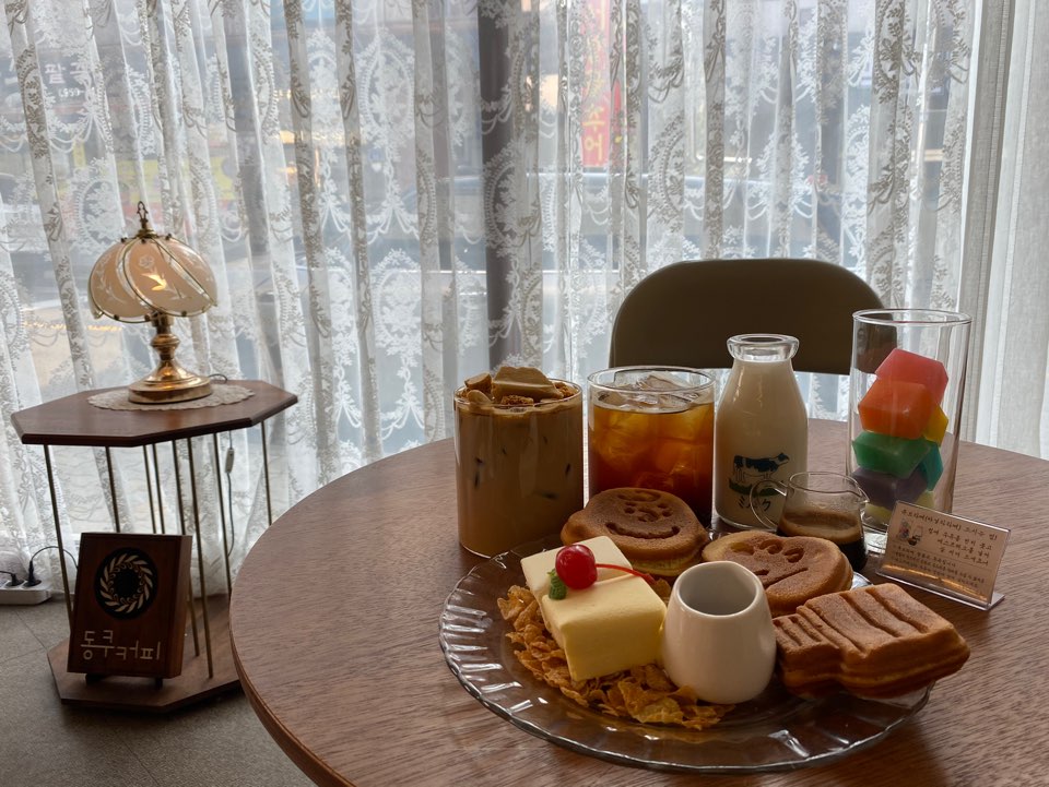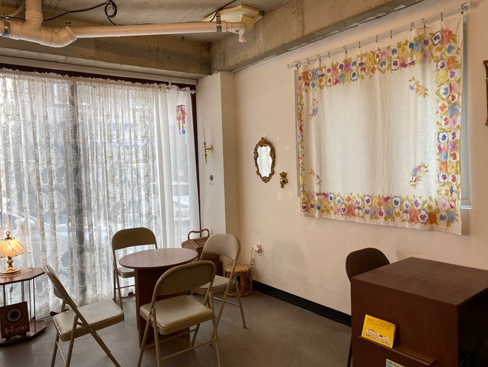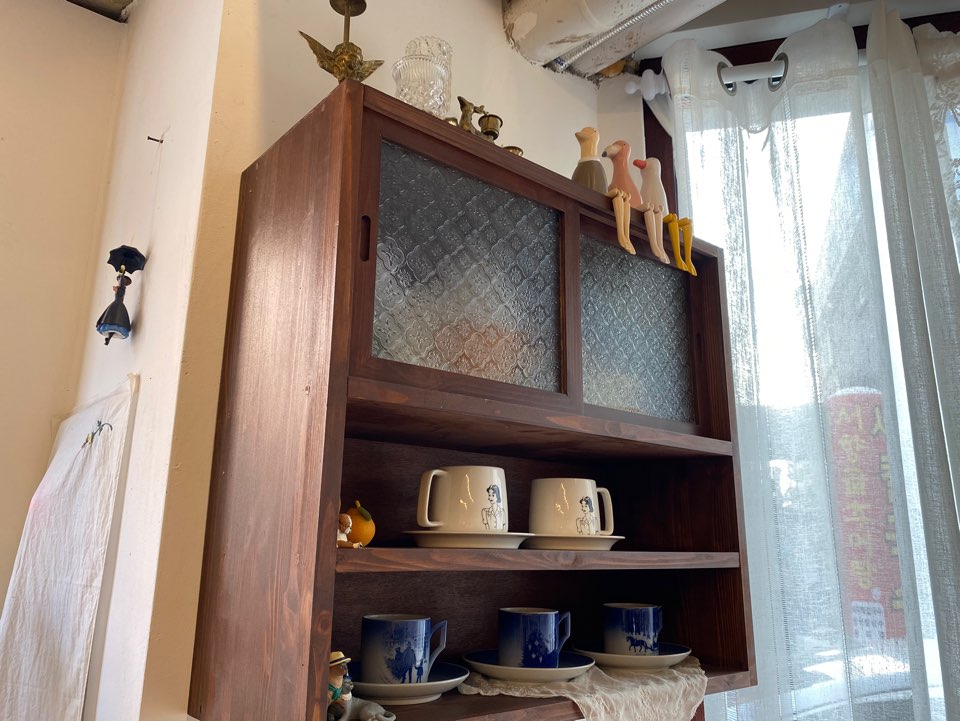 또 동쿠커피만의 메력은 곳곳에 디피되어있는 빈티지 소품들이 아닐까 싶습니다 요즘 날씨가 좋아서 우드톤의 인테리어가 카페를 한껏 부드럽고 따뜻하게 만들어주는 것 같습니다 그래서 방문하시는 분들이 분위기 있는 사진들을 많이 찍어가시더라구요 요즘 빈티지 소품, 컵에 관심이 많아져서 더 이런 부분에 관심이 가는 것 같습니다