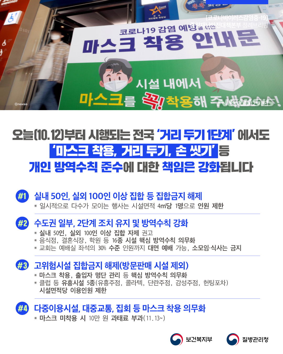 (수도권 내의 의무 방역 시설 확대 및 일부 시설은 사회적 거리두기 2단계 유지)